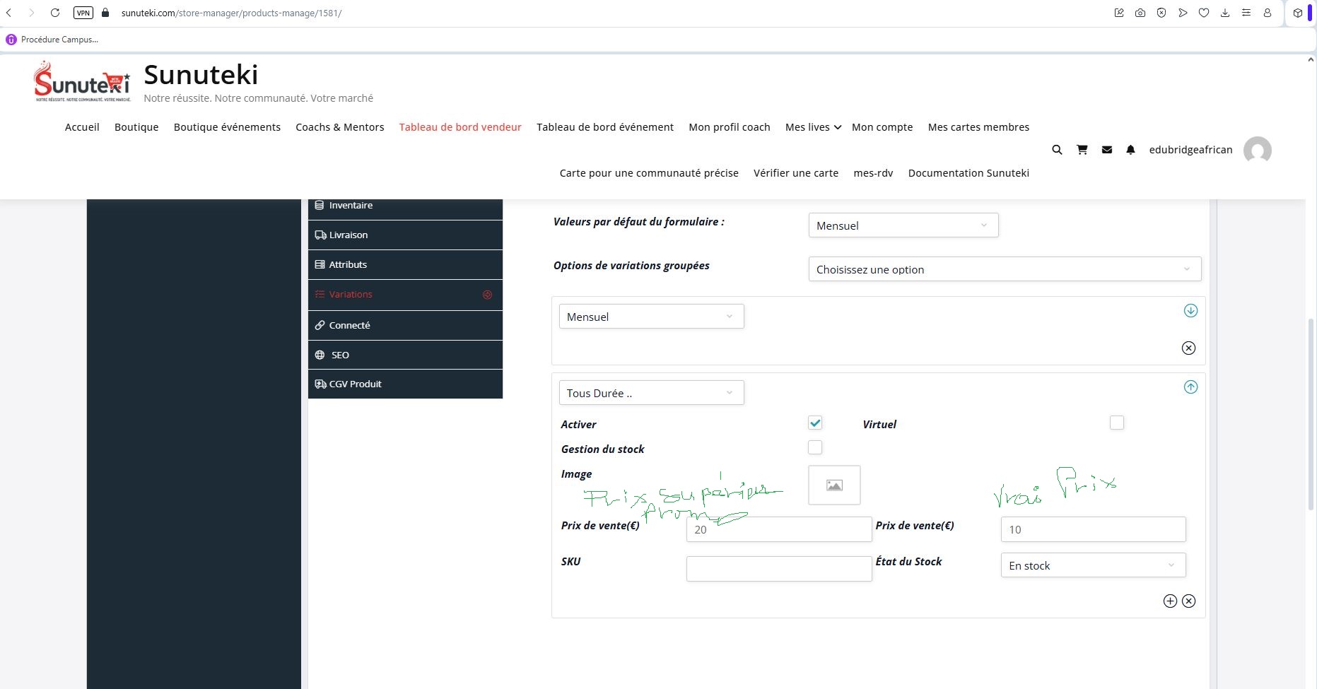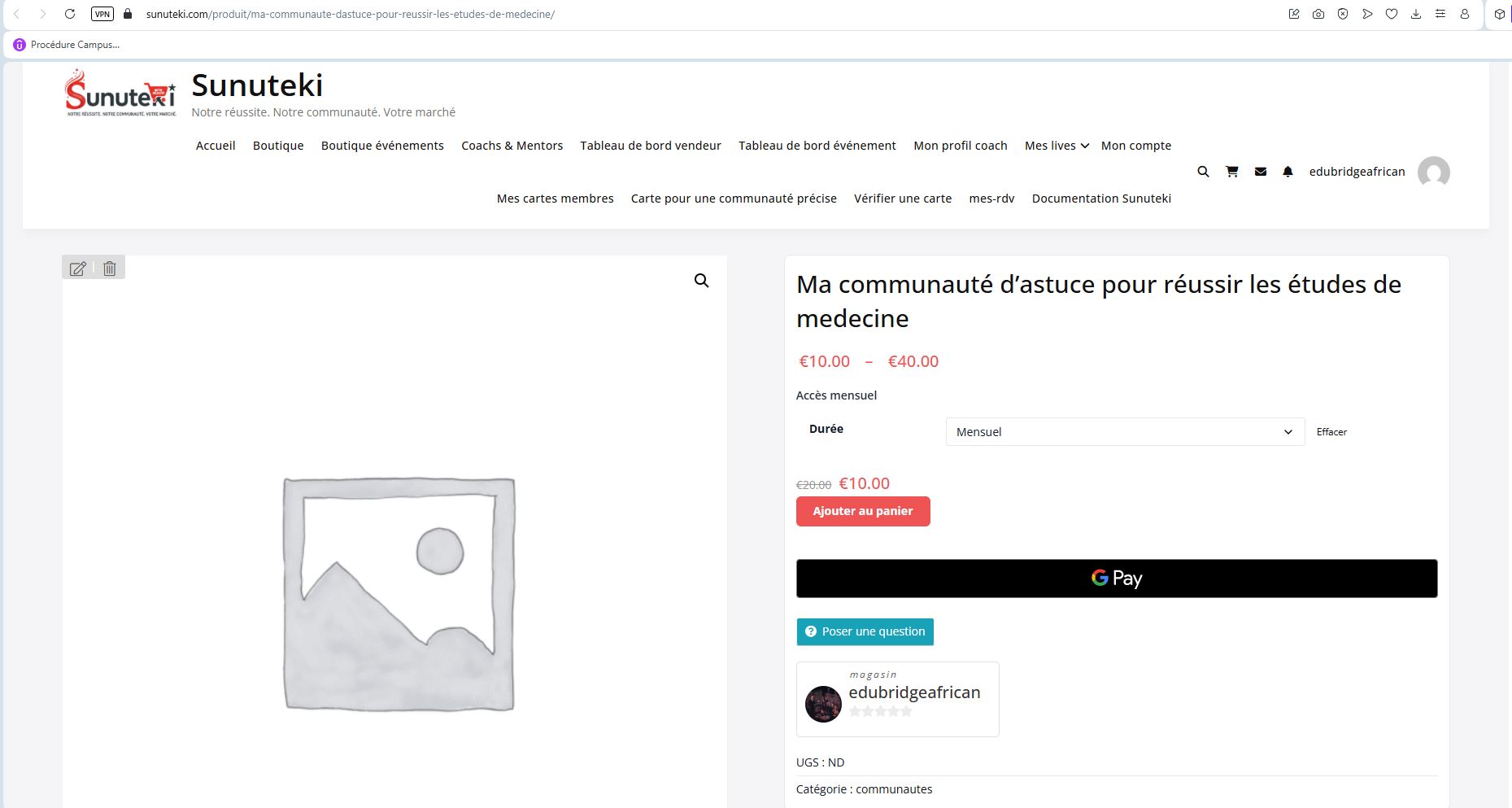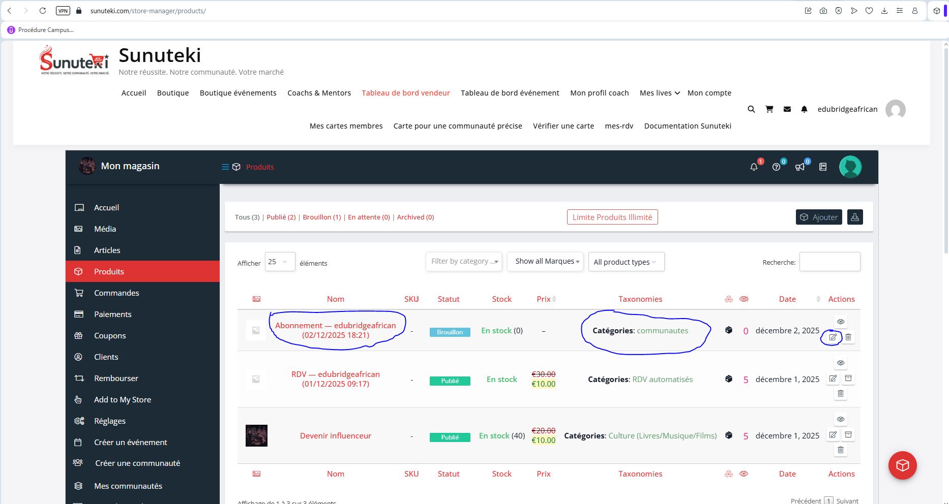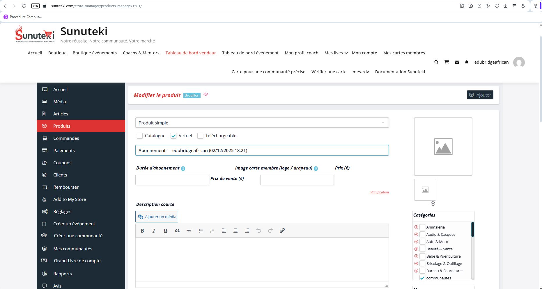 Le clic “Créer une communauté” a généré automatiquement un produit d’abonnement.