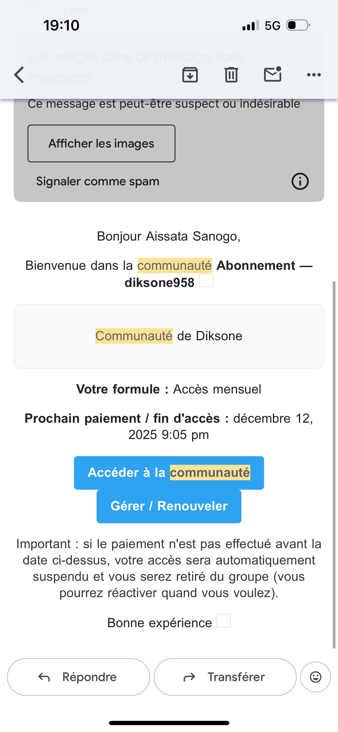 - un groupe privé (espace d’échanges entre coach et membres) ;