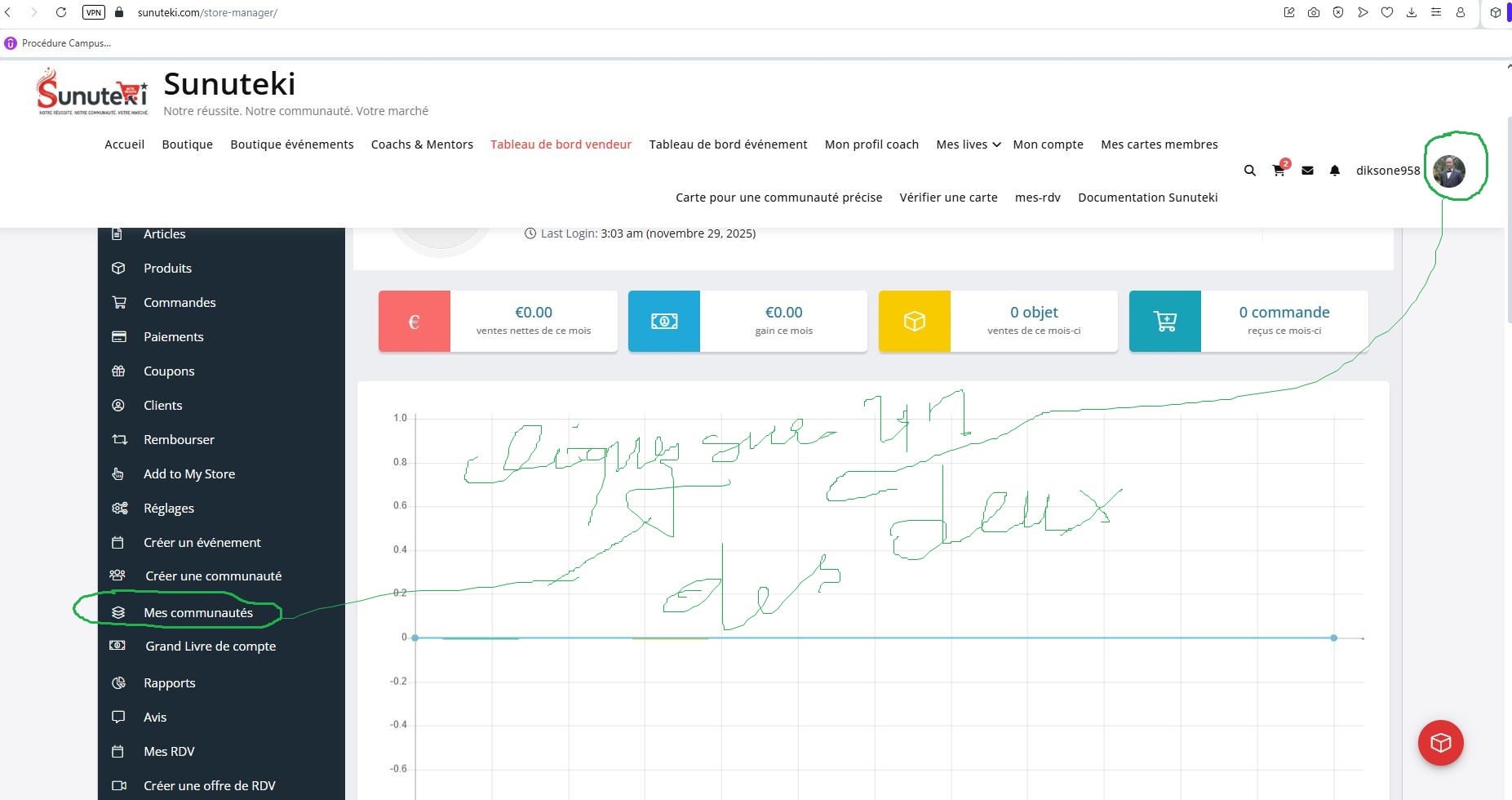 Clique sur créer une communauté et c’est depuis ton tableau de bord vendeur que tu vas gérer toute ta communauté : produits, abonnements, groupes privés et cartes membres.