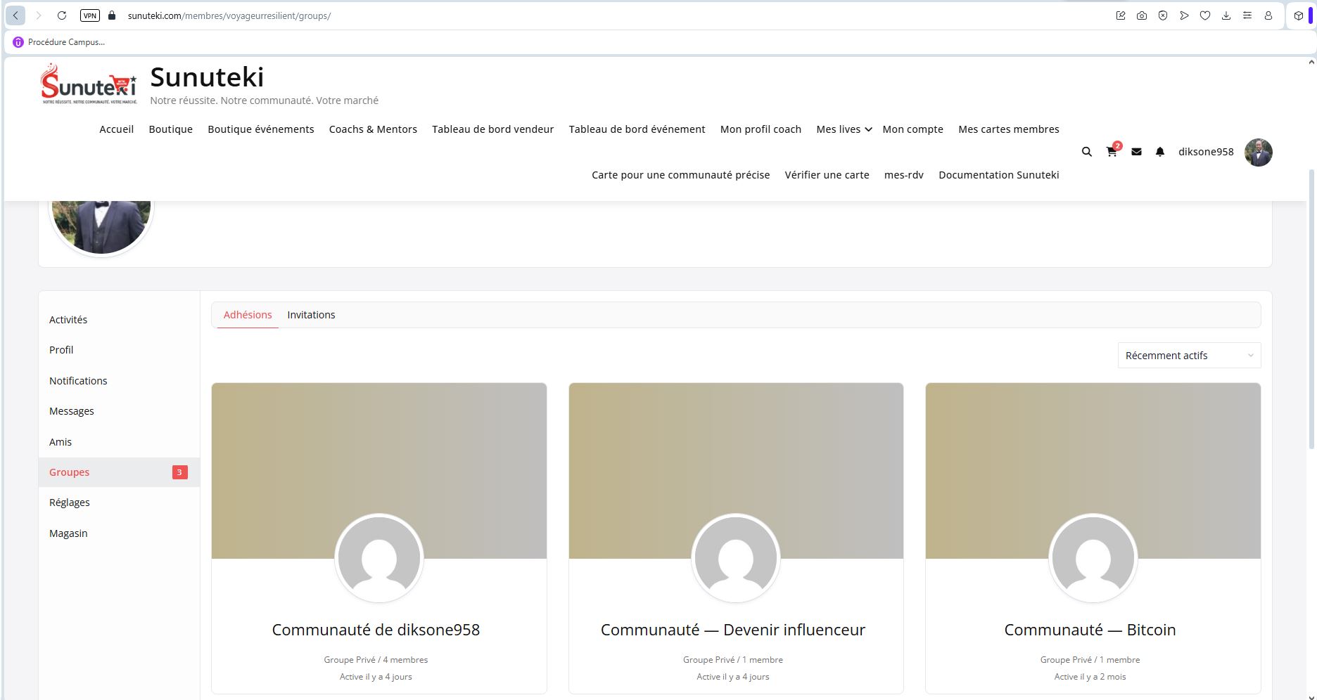 Depuis l’onglet Groupes, tu accèdes à toutes les communautés que tu as créées.