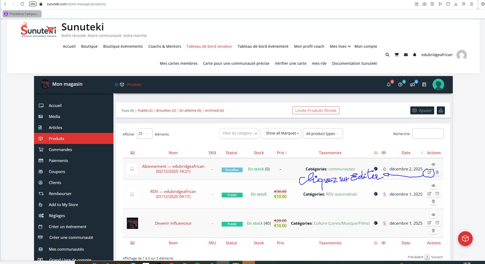 - Après avoir cliquer sur créer communauté, ça génère automatiquement un brouillons ne faites rien ;
